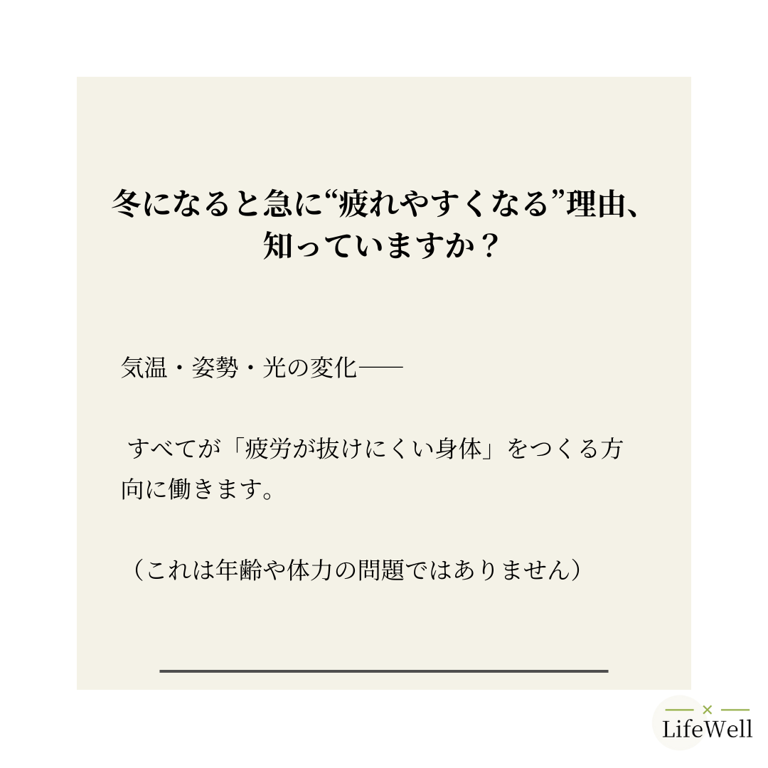 冬は、身体が疲れやすくなる条件がいくつも重なる季節。